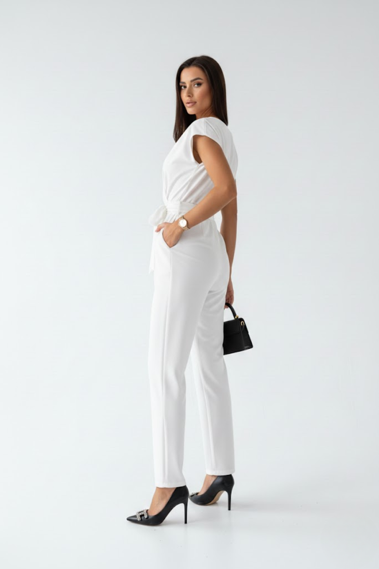 Cette combinaison féminine séduit par sa coupe fluide et structurée, pensée pour mettre la silhouette en valeur avec élégance et naturel. Son décolleté croisé en V apporte une touche raffinée tout en restant discret, tandis que la taille marquée affine la ligne sans contraindre les mouvements.