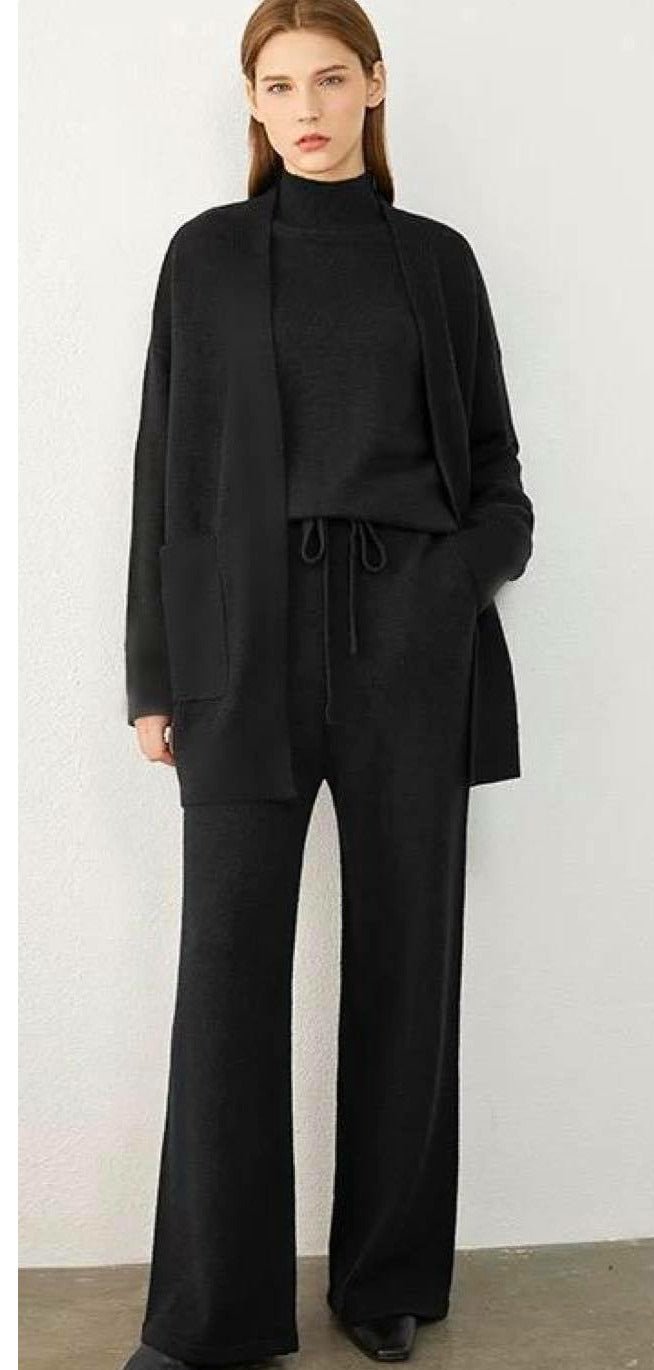 Cet ensemble trois pièces en bonne étoffe est le choix parfait pour celles qui aiment allier confort et style sans renoncer à la qualité.